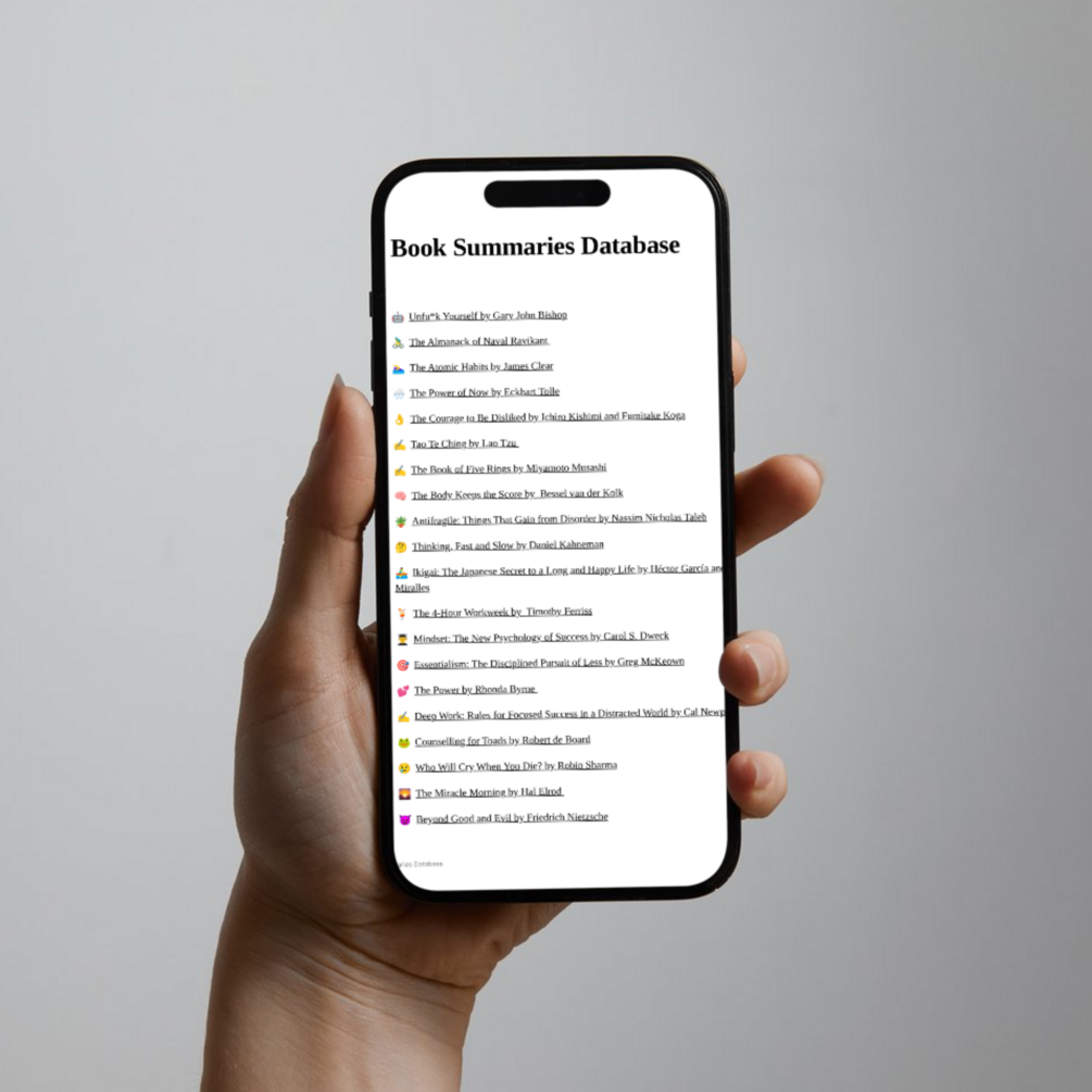 This powerful resource provides over 30 high-impact summaries from the most influential books across a range of topics, all accessible in Notion.
